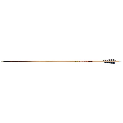 Built of a heavyweight, small diameter carbon that is ideal for the traditional archer. Features a wood grain finish with the look of custom footing. Straightness tolerance of +-.003ย and weight tolerance of +-2 gr. Available in sizes 600 (9.0 GPI), 500 (9.8 GPI), 400 (11.4 GPI), and 340 (12.1 GPI). Includes nocks, stainless steel inserts, and ballistic collars for increased front of center and durability. Factory fletched with 4ย feathers.