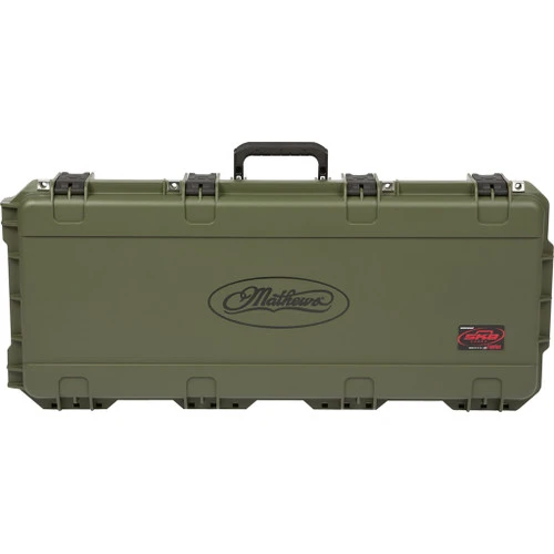 Case features the Mathews logo and has four trigger latches, four reinforced padlock locations, cushioned snap down handles on three sides and recessed, in-line skate style wheels, transporting your gear around the world is both worry and trouble free. The interior features a custom foam insert for secure positioning and cushioning of your gear. New state of the art water-jet cut foam arrow system holds up to a dozen arrows.The iSeries injection molded waterproof cases are constructed of ultra high-strength polypropylene copolymer resin and feature a gasketed, waterproof and dustproof. Interior Dimensions: 35 in L X 14 in W X 4 in D