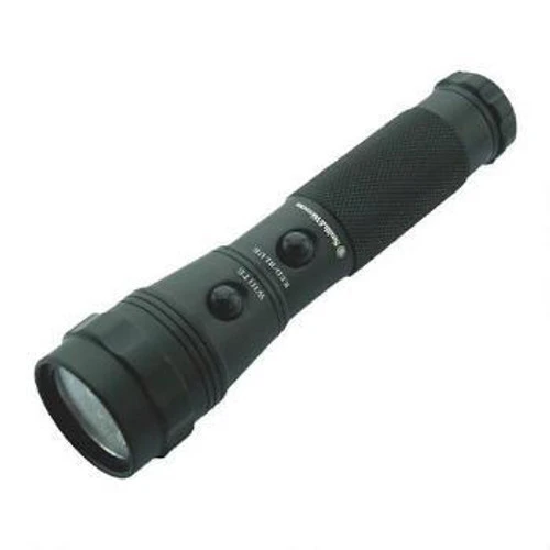 Anodized aerospace aluminum in matte black with deep diamond cut knurling for secure grip. Patented dual switch system for easy selection of white or colored LEDs. Includes batteries, holster, and lanyard.S&W Galaxy Series 12 LED Flashlight,