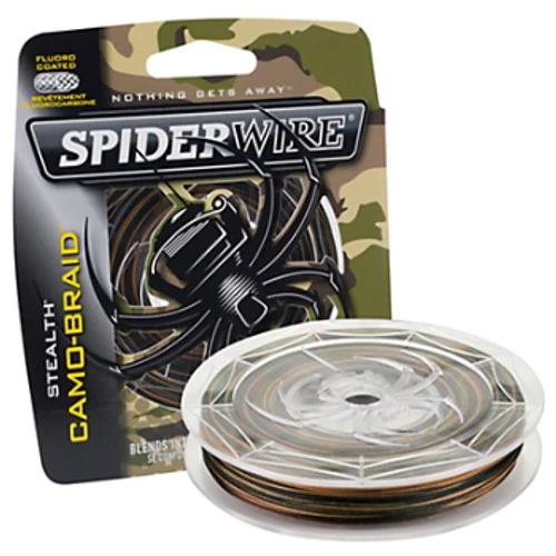 SpiderWire Stealthยฎ Green Camo Braid is made fromย Dyneemaยฎ, The World’s Strongest Fiber! Uniquelyย colored with varying color pattern of earth tones toย blend in with stained or high vegetation waters. Eachย size constructed to provide the ultimate strength withย the thinnest diameter for smooth and quietย performance. The no stretch properties of Dyneema PEย fibers provides incredible sensitivity to instantlyย detect bites andย structure.
