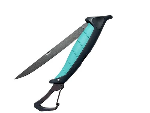 The Stowaway™ 8.5’’ Fillet Knife is designed with a medium flex perfect for larger game fish. Its unique design folds past an ergonomic handle for a compact design. The Stowaway fits easily into kitchen drawers, boat boxes, tackle bags, or travel packs without the need for a bulky sheath. The Stowaway Knife features titanium coating on the 8.5’’ high carbon stainless steel blade and all internal stainless steel components to provide superior, salt-tough corrosion resistance for harsh saltwater conditions.